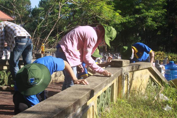 Sau lễ dâng hương, gần 3.000 đoàn viên thanh niên đến từ 6 tỉnh, thành gồm TP Hồ Chí Minh, Phú Yên, Quảng Nam, Thừa Thiên Huế, Quảng Trị đã ra quân thực hiện việc vệ sinh tường rào, lau chùi khoảng 22.000 phần mộ tại hai nghĩa trang quốc gia Trường Sơn và Đường 9.
