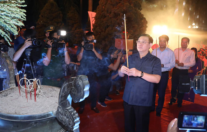 Trong không khí trang nghiêm, xúc động, Bí thư Thành ủy Vương Đình Huệ và các đại biểu đã thành kính dâng hương, hoa tưởng nhớ các Bà mẹ Việt Nam Anh hùng, các Anh hùng, liệt sĩ. Dành một phút mặc niệm tưởng nhớ, các đồng chí lãnh đạo thành phố cùng cán bộ, nhân dân thành kính bày tỏ lòng biết ơn vô hạn đối với công lao của các Bà mẹ Việt Nam Anh hùng đã hiến dâng những người con thân yêu cho Tổ quốc, các Anh hùng, liệt sĩ đã hy sinh cho nền độc lập, tự do, hòa bình của dân tộc, cho hạnh phúc của nhân dân.