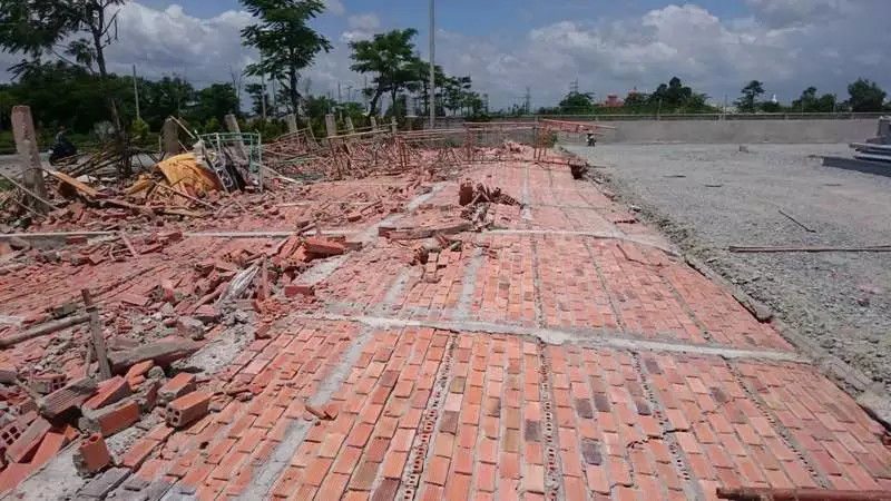 “May mắn là cả 3 người bị văng ra xa chứ nếu bị bức tường đè lên người thì không biết hậu quả sẽ như thế nào”, một công nhân bàng hoàng kể lại.