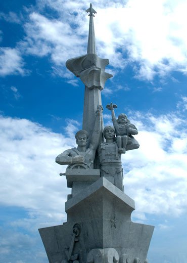 Ký ức ùa về, lặng người đi hồi lâu, ông Thạch kể tiếp: “Năm 2002, đoàn lính Nga cuối cùng rời khỏi Cam Ranh. Đến năm 2004, trong chuyến thăm lại Cam Ranh, Ban lãnh đạo Vietsovpetro đã đề xuất ý tưởng xây dựng tượng đài mới như ngày nay. Nét chủ đạo của công trình này được điêu khắc theo biểu tượng mũi tàu hướng về phía trước cùng với hai hình ảnh người lính của Hải quân Việt Nam sát cánh với không quân Liên Xô và em bé nâng cánh chim hòa bình. Đó là minh chứng cho tình đoàn kết, hữu nghị và niềm tin chiến thắng của hai dân tộc Nga - Việt”.