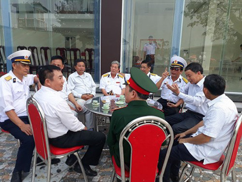 Sau lễ tưởng niệm, anh em, cán bộ chiến sỹ E83 cùng quây quần ôn lại kỷ niệm về Gạc Ma, về Trường Sa.