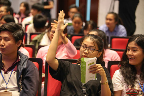 Các bạn trẻ hào hứng giơ tay tương tác với thần tượng khởi nghiệp