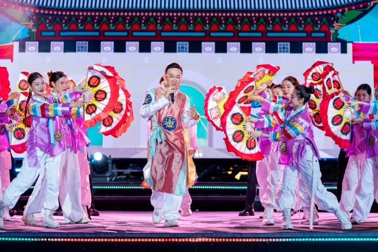 Tiếp theo đó là tiết mục Arirang không chỉ là bản nhạc gắn liền với tâm hồn người dân xứ sở Kim chi, mà còn được UNESCO công nhận là Di sản văn hóa phi vật thể đại diện của nhân loại.