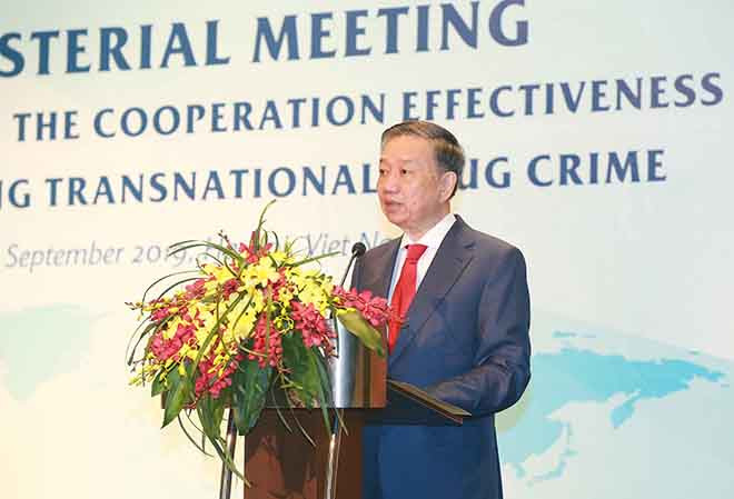 “Việt Nam được cộng đồng quốc tế tín nhiệm bầu làm nước Uỷ viên Không thường trực của Hội đồng bảo an Liên hợp quốc và cũng đang gấp rút chuẩn bị để tiếp nhận cương vị Chủ tịch ASEAN trong năm 2020. Hội nghị cấp Bộ trưởng lần này tiếp tục thể hiện cam kết chính trị mạnh mẽ của Việt Nam và các nước thành viên trong công tác phòng, chống ma túy khu vực và trên thế giới. Qua đó, góp phần đảm bảo an ninh, trật tự của mỗi quốc gia, vì sự phát triển ổn định của khu vực”, Đại tướng Tô Lâm thông tin.