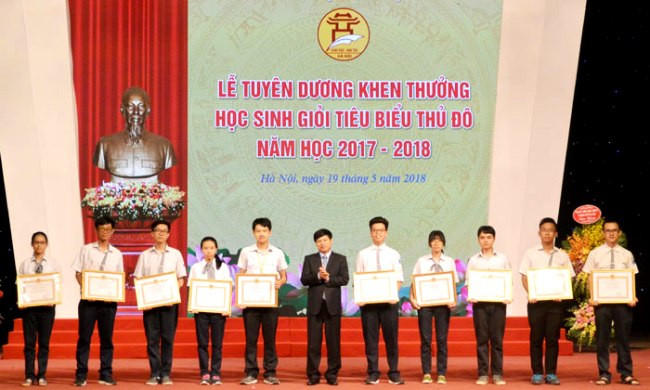 Ngày 19-5, Sở Giáo dục và Đào tạo Hà Nội tổ chức tuyên dương, khen thưởng hơn 800 học sinh giỏi tiêu biểu Thủ đô năm học 2017-2018. Đây là những gương mặt xuất sắc nhất, đại diện cho hơn 1,5 triệu học sinh phổ thông trên địa bàn Hà Nội.