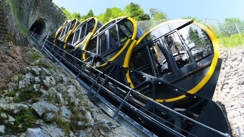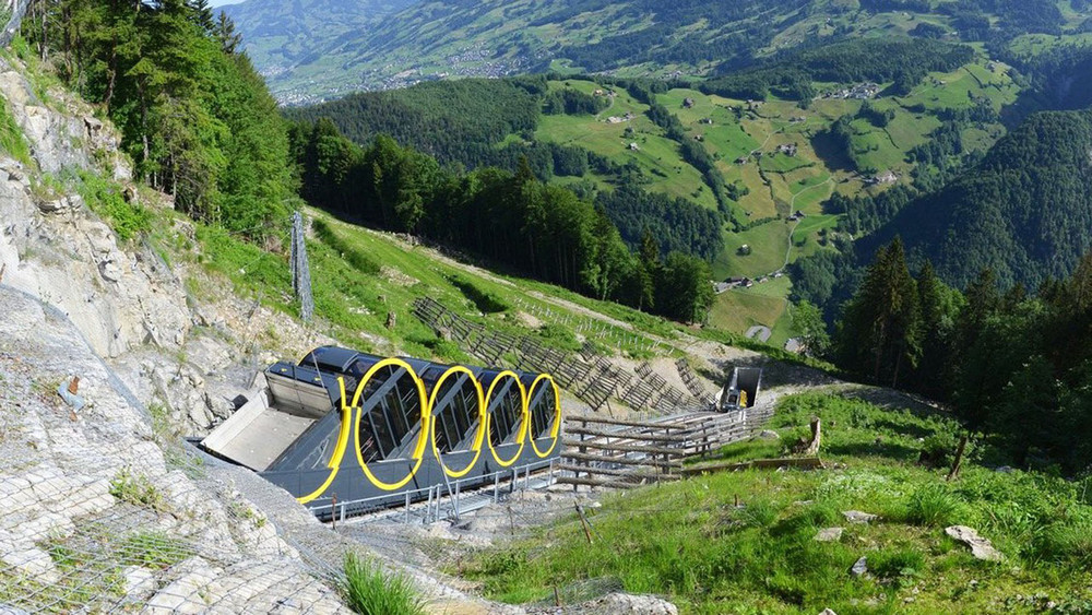 ANTD.VN - Tuyến đường sắt Stoos Bahn ở Thụy Sĩ nổi tiếng bởi tàu có khả năng leo núi dốc nhất thế giới, lên đến 47,7 độ mà vẫn đảm bảo trạng thái cân bằng cho hành khách.