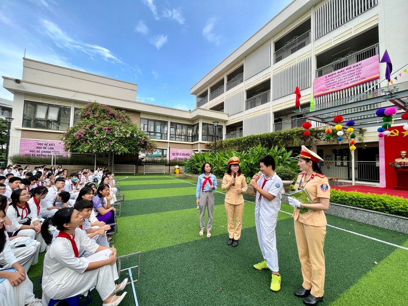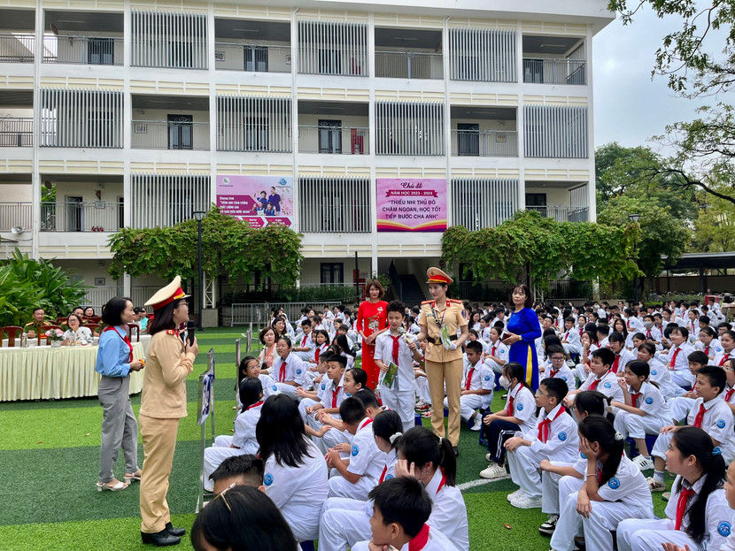 Tại buổi tuyên truyền, các báo cáo viên là cán bộ Đội Cảnh sát giao thông trật tự Công an quận Thanh Xuân bằng sự khéo léo, truyền cảm đã truyền đạt những câu chuyện, tình huống pháp luật hết sức đời thường về an toàn giao thông, phòng chống tác hại của thuốc lá điện tử đến các em học sinh.