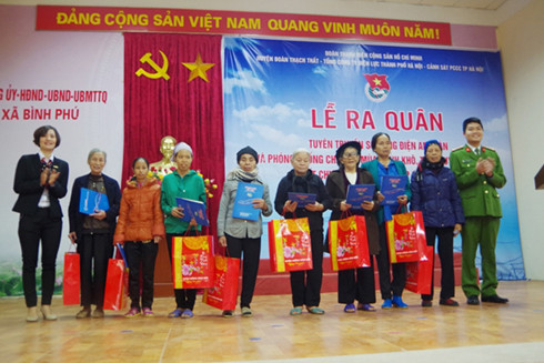 Cũng trong đợt này, các cơ sở đoàn Cảnh sát PCCC - TP Hà Nội đã tổ chức thăm hỏi, tặng quà tới các gia đình có hoàn cảnh khó khăn trên địa bàn huyện Thạch Thất.