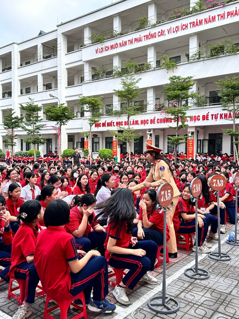 Bên cạnh đó, học sinh cũng được tuyên truyền về các hành vi ứng xử văn hóa khi tham gia giao thông; các quy định xử phạt vi phạm trật tự, an toàn giao thông theo quy định; cách nhận biết một số biển báo giao thông và ý nghĩa của biển báo hiệu giao thông và một số biển báo thường gặp…