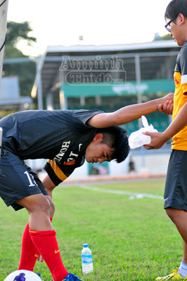 "Cựu thương binh" Huy Hùng chưa thể vào sân tập vì chấn thương mu bàn chân