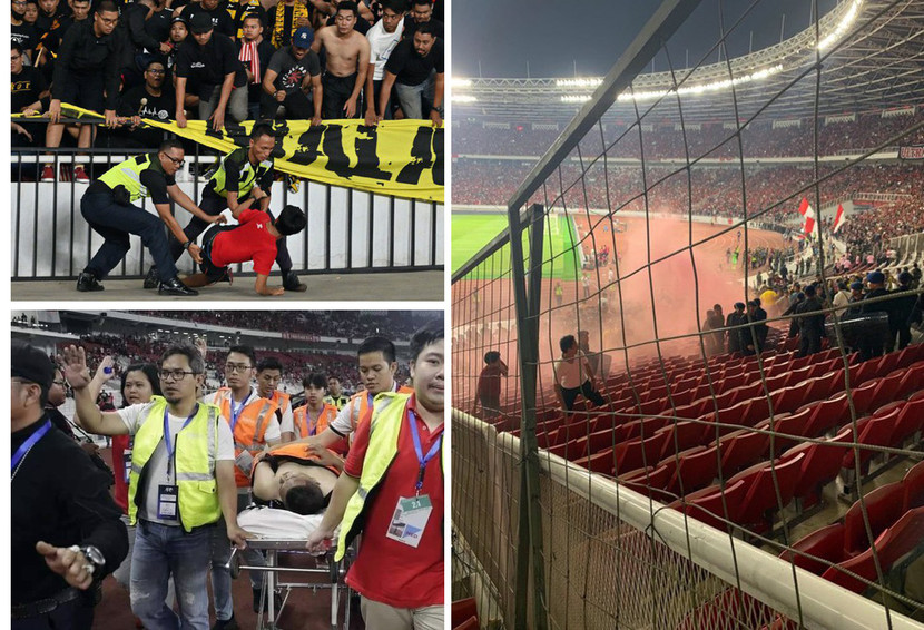 Thậm chí tại trận đấu với Malaysia, sân Bung Karno còn xuất hiện bạo động khi nhóm cổ động viên quá khích ném gạch đá, pháo sáng và hành hung cổ động viên đối phương, trước và trong khi trận đấu diễn ra. Hết trận, toàn bộ thành viên đội tuyển Malaysia phải rời sân bằng xe bọc thép. Hiện AFC vẫn chưa đưa ra án phạt cho sự cố này.