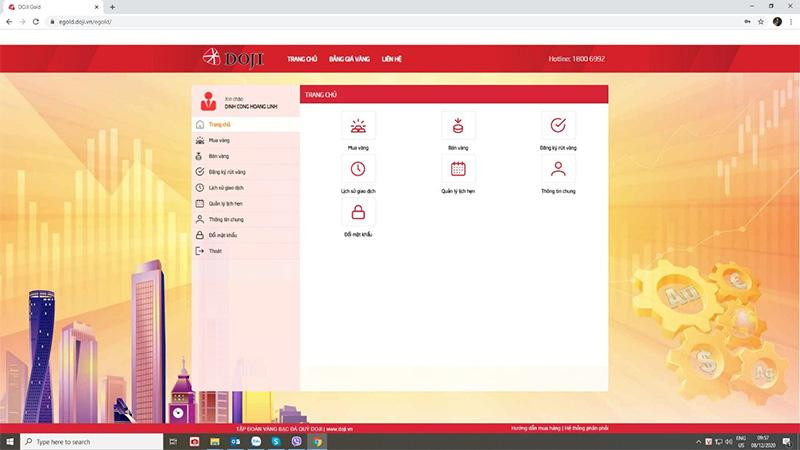 Tùy theo nhu cầu và mục đích giao dịch, khách hàng sẽ tiếp tục bằng cách chọn Mua vàng hoặc Bán vàng. Tại Lịch sử giao dịch, nhà đầu tư có thể quản lý các giao dịch vàng của cá nhân.