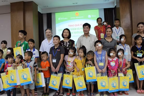 Tặng quà cho các trẻ em ở Tuyên Quang được khám, phẫu thuật mắt miễn phí