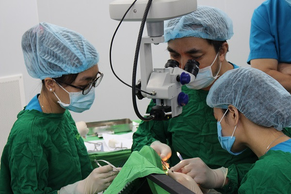 Một ca phẫu thuật mắt miễn phí cho trẻ em thực hiện tại Bệnh viện Mắt Hà Nội 2