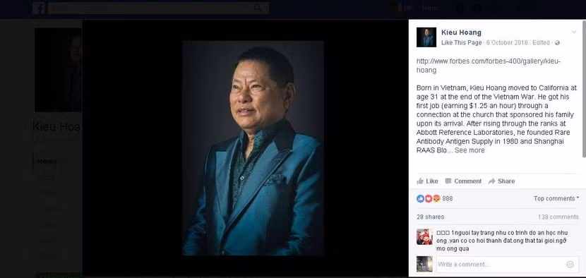 Tính đến thời điểm khi tỷ phú Hoàng Kiều chia sẻ dòng trạng thái trên, trang Fanpage của Hoàng Kiều đã thu hút 15.860.327 người xem cùng trên 300.000 người yêu thích và theo dõi. Bạn trai cũ của Ngọc Trinh chia sẻ đêm nhạc “Tạ tình” mà ông vừa tổ chức ở Mỹ chính là lời cảm ơn đến những người quan tâm tới mình, đồng thời cho biết sẽ duy trì trang Fanpage cá nhân tới tới ngày 28-2-2017, sau đó sẽ đóng cửa trang này vĩnh viễn.