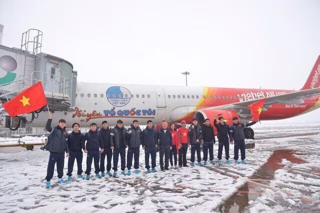 Chuyên cơ đón U23 Việt Nam tại Thường Châu, Trung Quốc