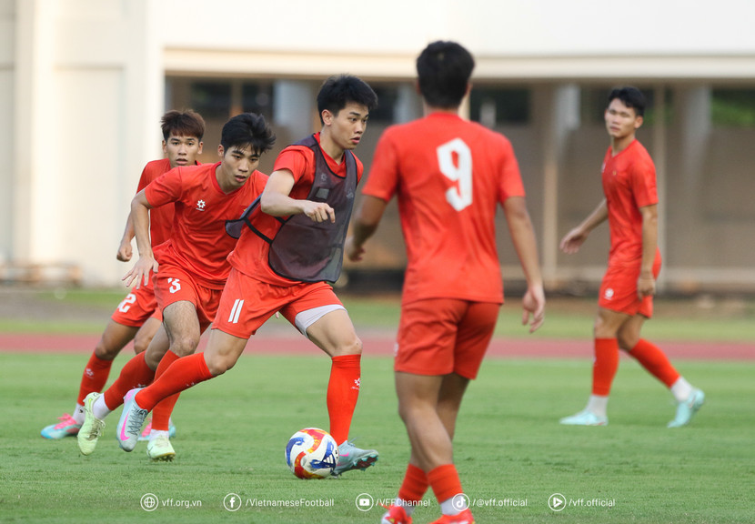 Trong buổi tập cuối cùng chiều 24-7 tại Jakarta, toàn đội ra sân từ 16h tại sân phụ gần Gelora Bung Karno, đúng khung giờ diễn ra trận bán kết ngày mai. Không còn cảnh trời tối như buổi tập trước, hôm nay điều kiện thời tiết và sân bãi đều thuận lợi, giúp các cầu thủ thực hiện trọn vẹn giáo án mà ban huấn luyện đề ra.