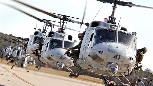 UH-1 do hãng Bell chế tạo, tên chính thức là Iroquois, nhưng nó thường được biết dưới tên là Huey - khi hoạt động trong lực hải quân đánh bộ Mỹ ở khắp nơi trên thế giới, đặc biệt là trên chiến trường Việt Nam với chiến thuật “trực thăng vận” nổi tiếng… thất bại.