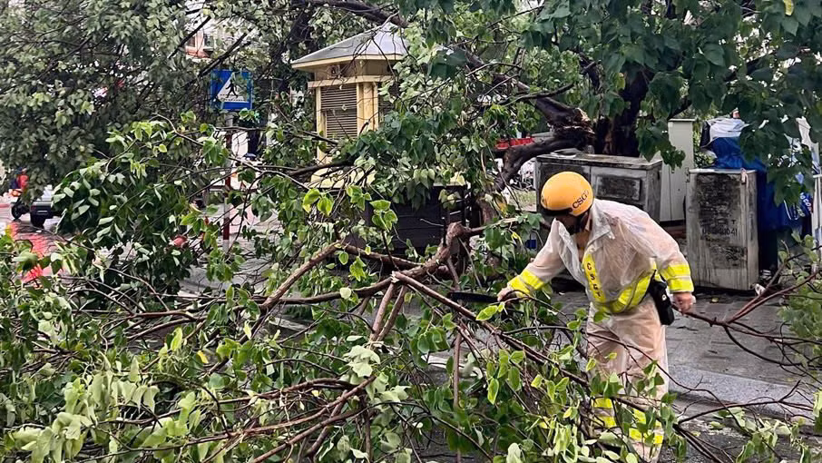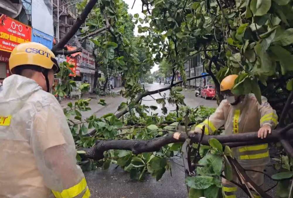 ANTD.VN - Chiều 7/9, Thủ đô Hà Nội đã có mưa lớn kèm gió giật mạnh trên diện rộng, đường phố vắng lặng. Song lực lượng Cảnh sát giao thông Thủ đô vẫn ứng trực 100% quân số, liên tục tuần tra, dọn dẹp cây xanh gãy đổ trên đường.