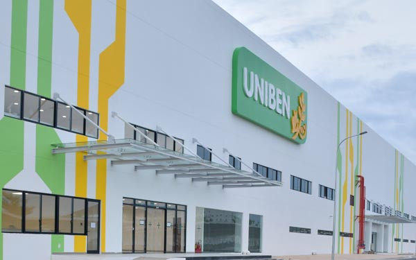 Nhà máy UNIBEN Bình Dương giai đoạn 1 được xây dựng trong khuôn viên 16 ha với diện tích dưới mái gần 50,000 m2 thuộc KCN Việt Nam – Singapore 2 (tỉnh Bình Dương), tổng mức đầu tư gần 1.000 tỷ đồng. Nhà máy được thiết kế và xây dựng theo tiêu chuẩn châu Âu, sử dụng công nghệ và trang thiết bị hiện đại, tự động hoá cao, có khả năng cung cấp trên 1 tỷ đơn vị sản phẩm/năm với nhãn hiệu “3 Miền” và “Reeva”.