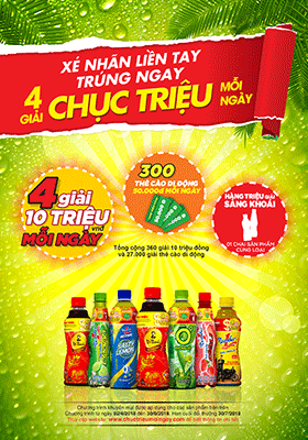 Chương trình với tên gọi “Xé nhãn liền tay, trúng ngay 4 giải chục triệu mỗi ngày” được diễn ra trong dịp hè từ ngày 2/4 đến hết ngày 30/6/2018.
