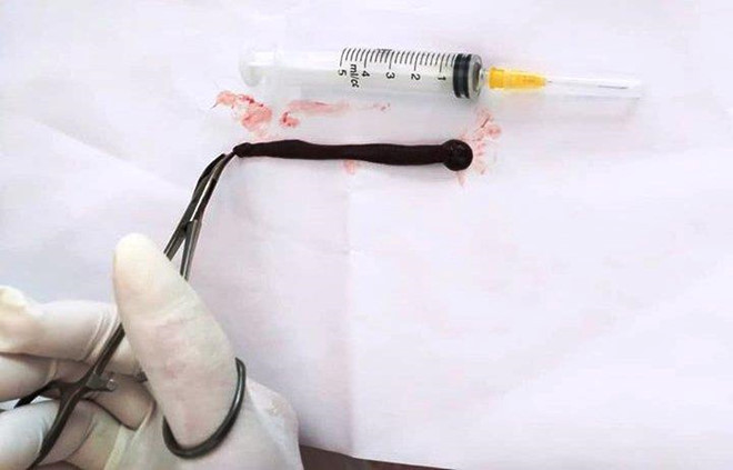 Ngay sau đó, các bác sĩ đã tiến hành gắp thành công một con đỉa dài 10 cm trong hốc mũi cậu bé ra ngoài.