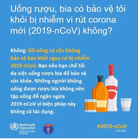 ANTD.VN - Những câu hỏi như: Uống rượu, bia có giúp hạn chế lây bệnh corona? Ăn tỏi, dùng nước súc miệng sát khuẩn hàng ngày có phòng được bệnh?… Tất cả đều được giải đáp trong bộ infographic mới nhất do Bộ Y tế phối hợp với WHO tại Việt Nam xây dựng, phát hành ngày 9-2.