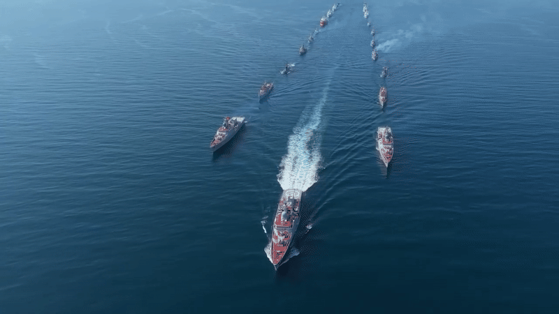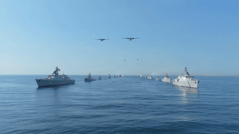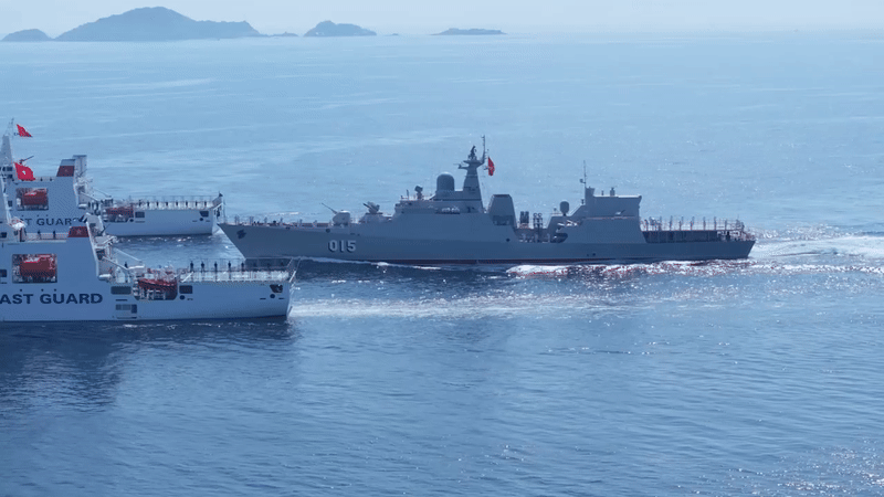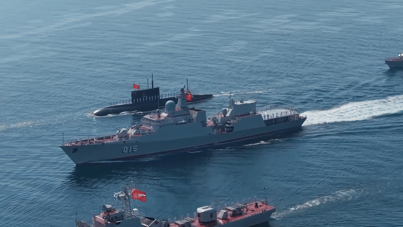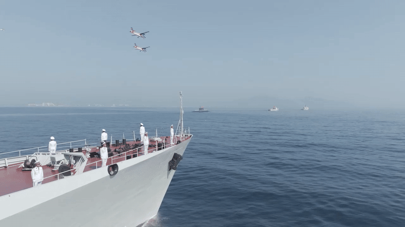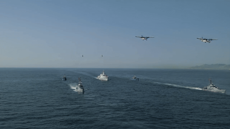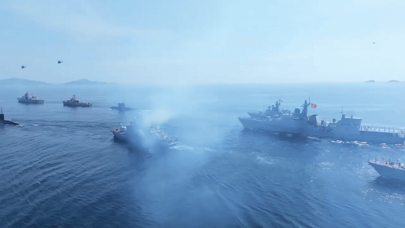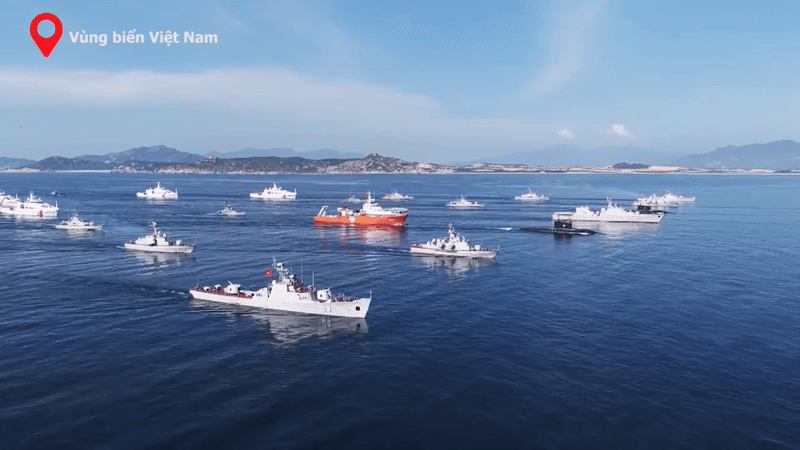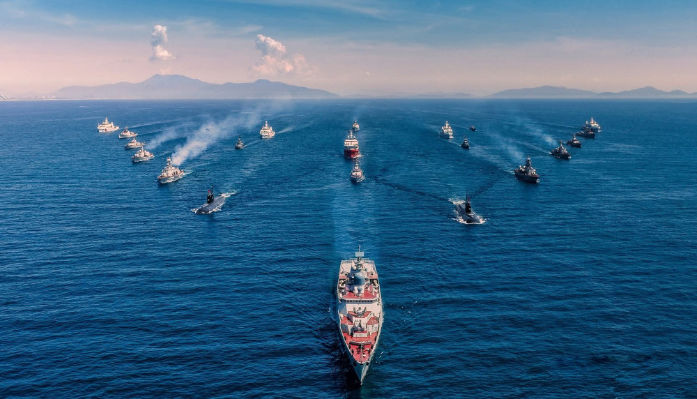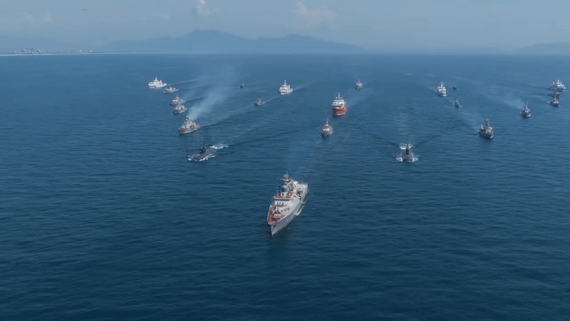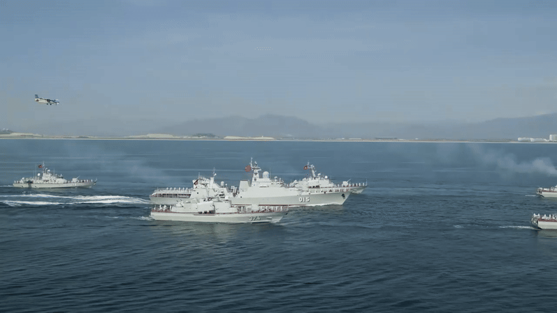 Uy lực của tàu chiến dẫn đầu hạm đội diễu binh trên biển trong sự kiện A80