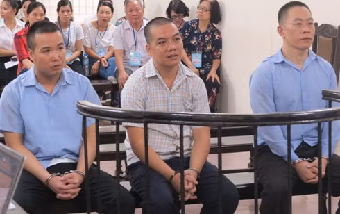 Vũ Huy Phong (ngoài cùng, bên phải) cùng các bị cáo liên quan