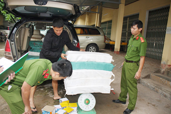 Các trinh sát theo dõi chiếc xe ôtô trên đến khoảng 3h sáng cùng ngày tại thị trấn Lao Bảo, phát hiện tại đây xuất hiện một số xe máy chở theo các bao hàng chất lên xe. Lúc này, lực lượng công an có mặt, truy đuổi chiếc xe ôtô chạy đến địa phận xã Tân Thành, huyện Hướng Hóa và chặn lại kiển tra.