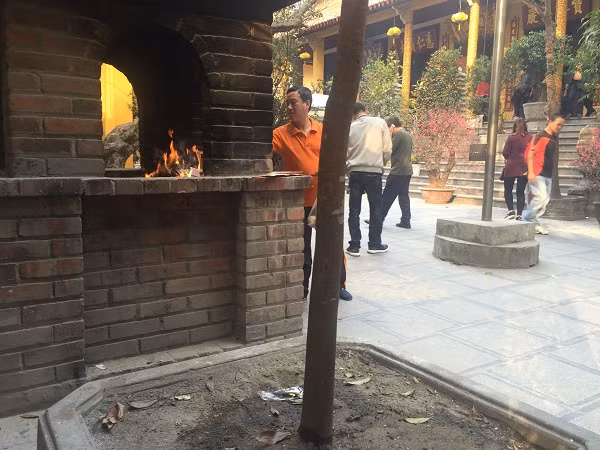 Trong các chùa, việc đốt vàng mã cũng khác nhau, ở chùa Trấn Quốc người dân có thể thoải mái hóa vàng ở những nơi đã được quy định