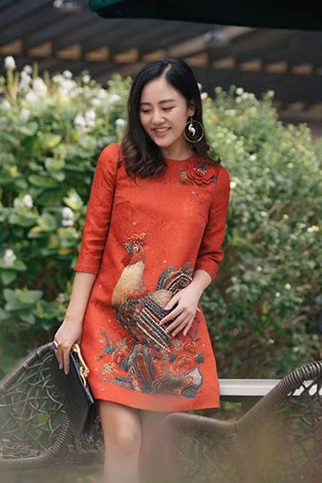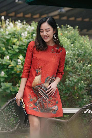 Điểm nhấn chính trong những bộ trang phục của Văn Mai Hương đó chính là tông màu đỏ tươi mới cùng họa tiết thêu tay đại kê (gà trống) – biểu tượng của năm Đinh Dậu sắp đến. Ngoài trang phục, thần thái vui vẻ, kiểu tóc, trang điểm tự nhiên của Văn Mai Hương cũng khiến cho bộ ảnh thêm phần cuốn hút.