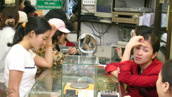 Tại Hà Nội, ngày 14-9, mặc dù nhiều người theo dõi thông tin giá vàng rất sát nhưng giao dịch mua bán không có nhiều biến động. Tuy nhiên, lượng người mua vào vẫn lớn hơn người bán ra. Theo dự báo mới đây của ngân hàng HSBC, từ nay đến cuối năm, giá vàng sẽ chạm mốc 48 triệu đồng/lượng. Có thông tin cho rằng, Công ty SJC vừa đề xuất Ngân hàng Nhà nước cho dùng vàng nữ trang để làm nguyên liệu sản xuất vàng miếng nhằm giải bài toán khan vàng miếng trên thị trường hiện nay.