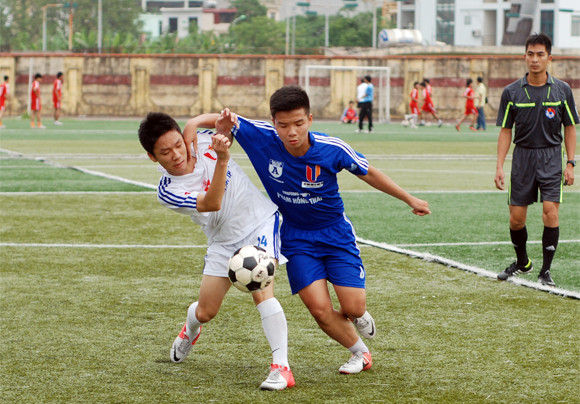 Bằng chứng là có tới 2 phá dứt điểm, bóng đi trúng vào khung thành rồi ra ngoài. Bên kia chiến tuyến, THPT Trần Quốc Tuấn cũng không thể hoàn thành nhiệm vụ ghi bàn. Thể lực sung mãn cùng sự năng nổ trong lối chơi của các cầu thủ quốc tịch Lào chiếm đa số đội hình giúp đội bóng mang này duy trì thế trận cân bằng với đối thủ.