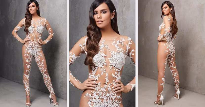 Thiế kế độc đáo này là một xu hướng được dự đoán sẽ phổ biến trong năm 2019 nhưng cũng sẽ gây nhiều tranh cãi. Thương hiệu Pronovias của Tây Ban Nha đã từng làm nổ ra một cuộc tranh luận với bộ jumpsuit cưới rất “lộ liễu”.