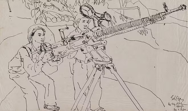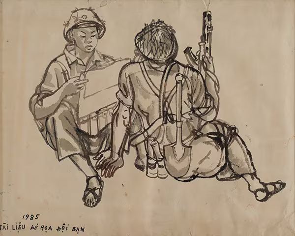 Tài liệu kí họa đội bạn, 1985 - Màu nước trên giấy, 39 x 31 cm - Họa sĩ Đào Đức