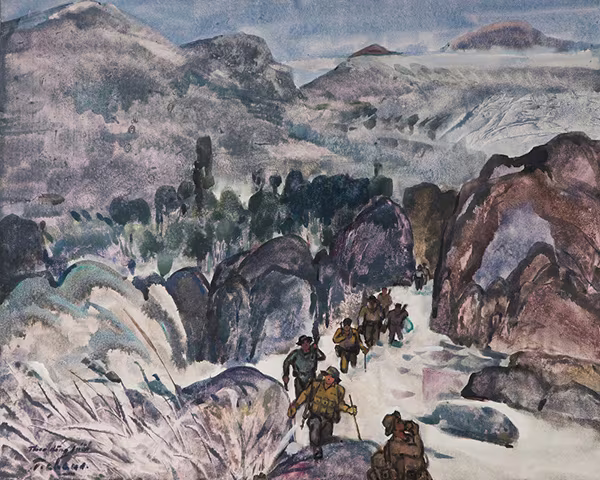 Đường Trường Sơn theo dòng suối, 1995 - Thuốc nước trên giấy, 64 x 80 cm - Họa sĩ Nguyễn Thanh Châu