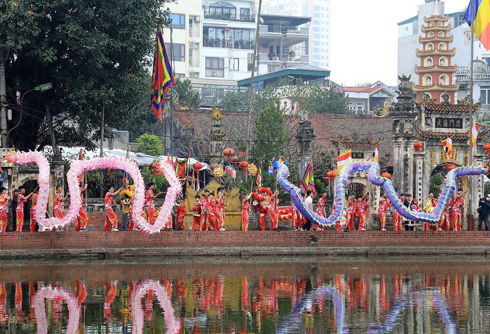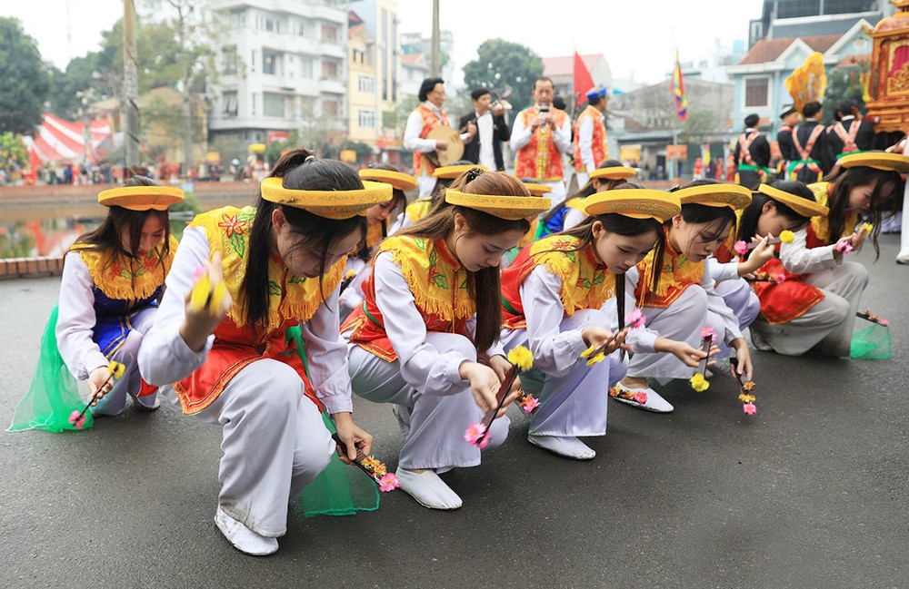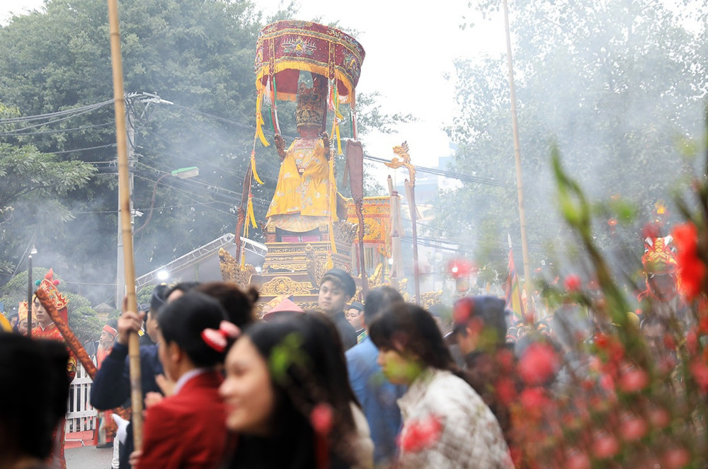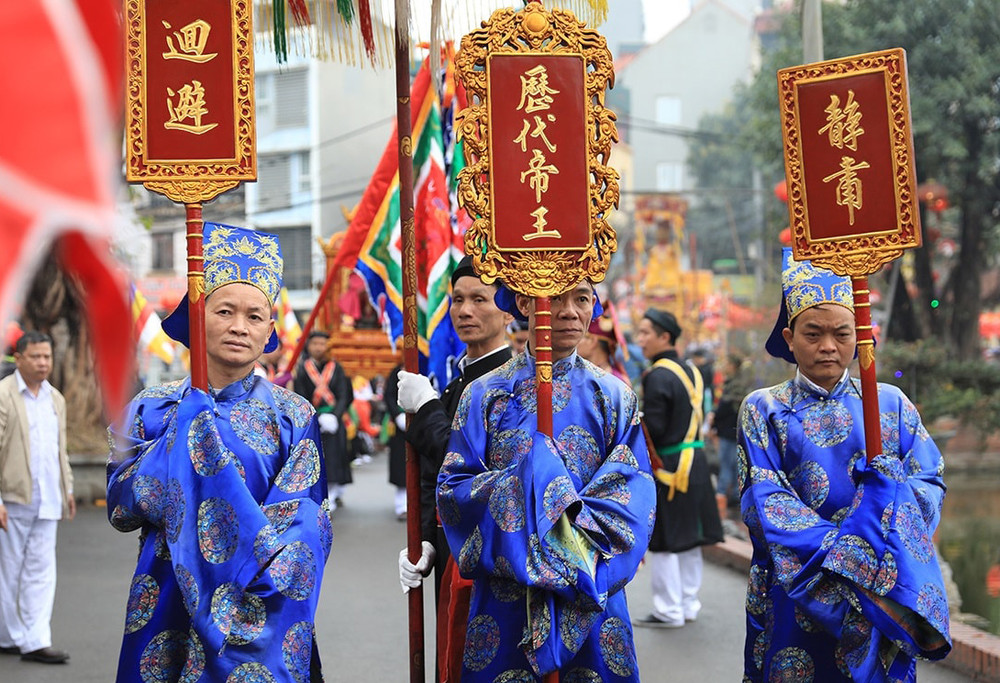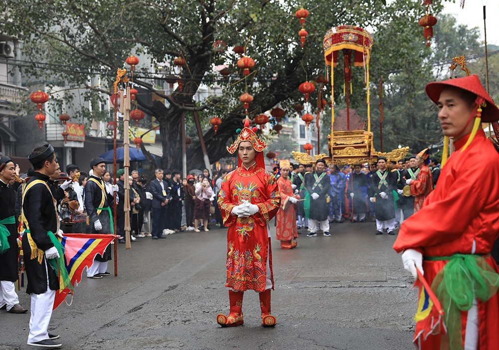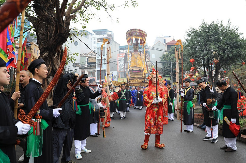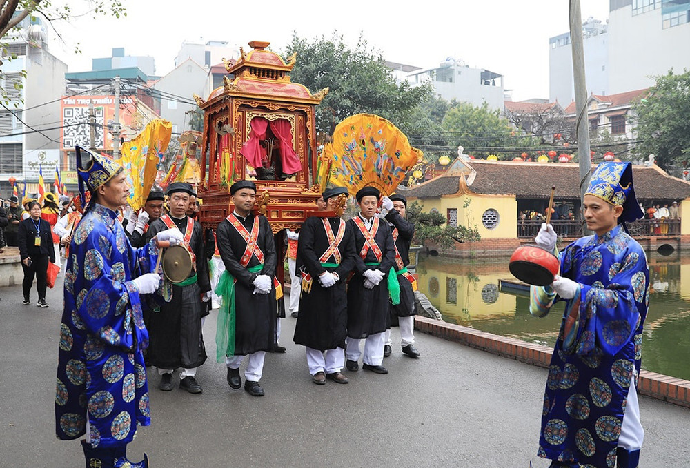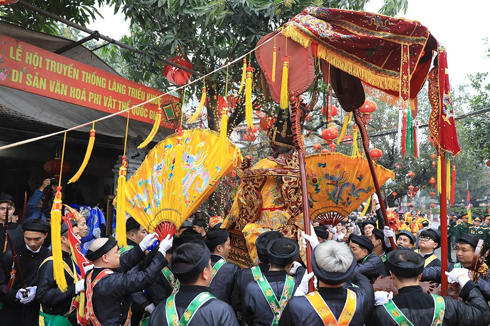 ANTD.VN - Lễ hội truyền thống ở làng Triều Khúc, xã Tân Triều (Thanh Trì, Hà Nội) nổi bật với đoàn rước tưởng nhớ vị anh hùng dân tộc Bố Cái Đại Vương Phùng Hưng với nhiều nghi thức trang trọng cùng các tục lệ độc đáo, thu hút đông đảo sự tham gia người dân địa phương.