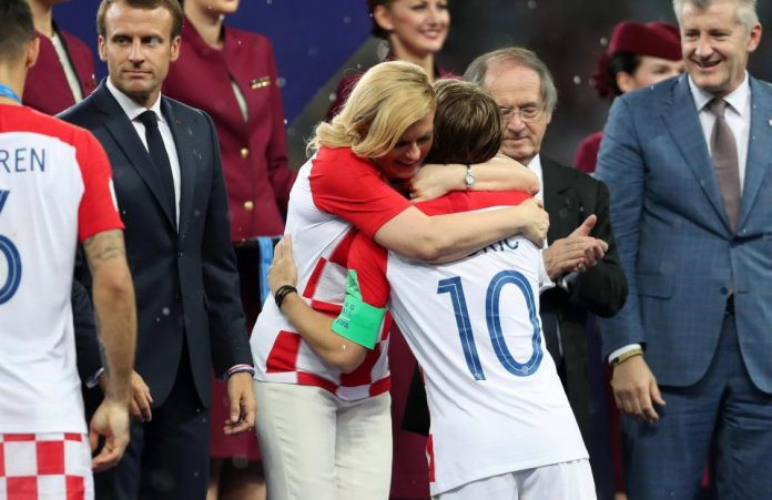 Tổng thống Croatia, bà Kolinda Grabar-Kitarovic chia sẻ cảm xúc cùng Luka Modric