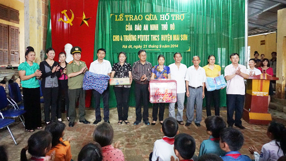 Sáng chủ nhật 21-9, cả trường Phổ thông dân tộc bán trú THCS Nà Ớt vui như có hội. Tin đoàn công tác xã hội Báo An ninh Thủ đô cùng Công ty CP quảng cáo Hà Thái, Công ty TNHH quảng cáo Ngọc Hà sẽ lên tặng quà đã được loan báo từ mấy hôm nay. “Chuyện thầy trò nghèo vùng cao phải thường xuyên sống trong cảnh thiếu thốn chẳng còn lạ, nhưng riêng với Mai Sơn, những cán bộ công tác trong ngành giáo dục mỗi khi đến thăm vẫn phải động lòng” - ông Lê Trung Tấn, Ủy viên Ban chấp hành hội cựu giáo chức huyện Mai Sơn ngậm ngùi cho biết. Ông Tấn theo nghề giáo mấy chục năm nay, đến tận lúc về hưu vẫn đăm đắm với nghề. Từng “cắm chốt” ở đây nhiều năm, ông thấy thương khi nhìn cảnh lũ trẻ lội suối đến trường. Các cụ bảo “có thực mới vực được đạo”, lũ trẻ ăn còn chẳng đủ, bảo sao có sức mà học. Thế nên đích thân ông đứng ra làm cầu nối để món quà của Báo An ninh Thủ đô cùng bạn đọc tới được với thầy trò của huyện.