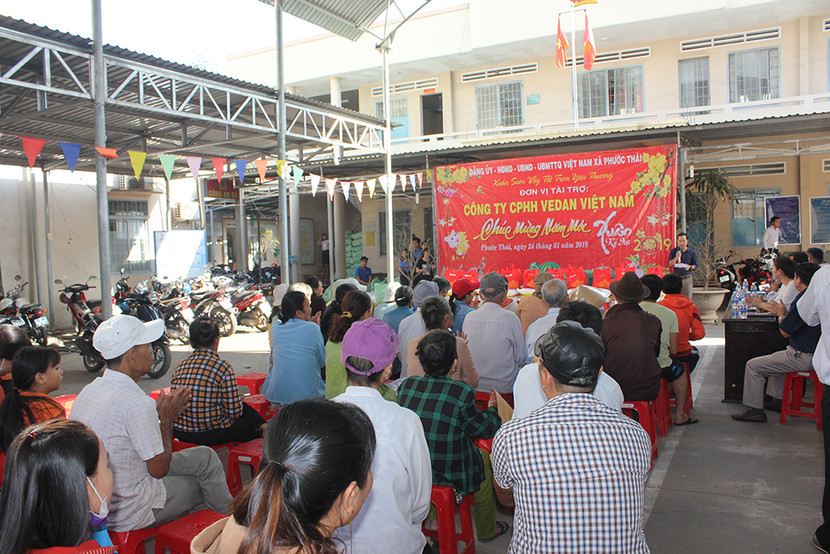 Trong dịp nói trên, Vedan Việt Nam đã tiến hành trao tặng hơn 1.000 phần quà (mỗi phần trị giá khoảng 600.000 đồng), gồm tiền mặt và nhu yếu phẩm như: Gạo, dầu ăn, gia vị bột ngọt, bột nêm Vedan… tới người dân tại các xã Mỹ Xuân, Phước Thái, Phước Bình, Tân Hiệp, Bàu Cạn, Bình An, Long Đức... thuộc huyện Long Thành, tỉnh Đồng Nai. Bên cạnh đó, Vedan Việt Nam cũng kết hợp cùng Báo Phụ nữ TPHCM trao tặng các phần quà Tết hỗ trợ trẻ em nghèo, nữ lao động nhập cư, phụ nữ nghèo không có điều kiện về quê ăn Tết ở thành phố Hồ Chí Minh.