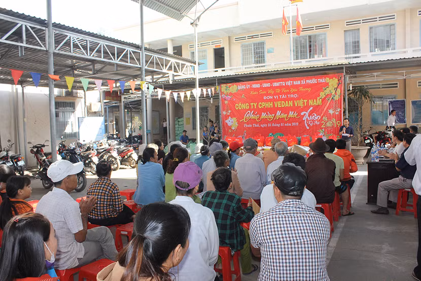 Trao tặng quà Tết cho người có hoàn cảnh khó khăn là hoạt động thường niên của Vedan Việt Nam trong nhiều năm qua, thể hiện trách nhiệm xã hội của doanh nghiệp. Đây là nỗ lực thực hiện triết lý "Phát triển từ xã hội, cống hiến cho xã hội” được Vedan triển khai xuyên suốt quá trình phát triển tại Việt Nam.