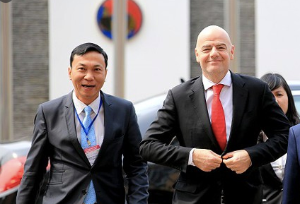 Chủ tịch FIFA Gianni Infantino (phải) thăm trụ sở VFF năm 2018