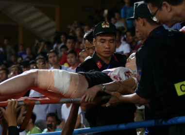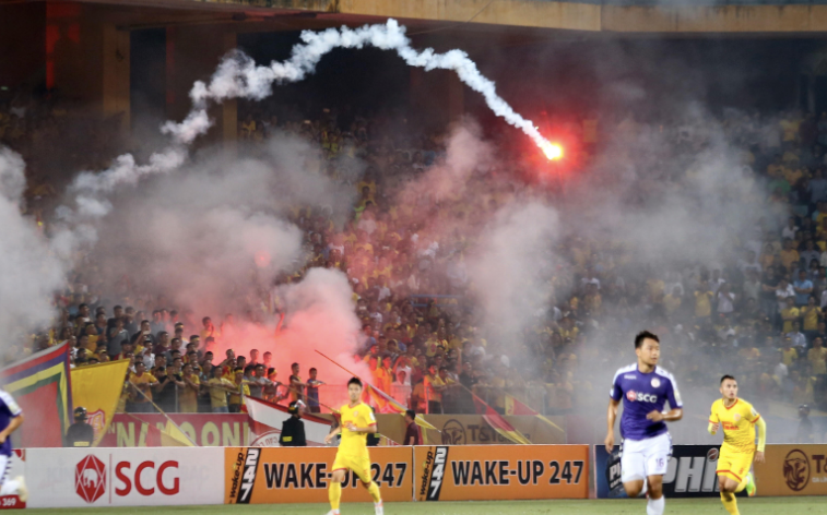 Đáng lên án nhất là hành vi đốt, bắn pháo thăng thiên của những kẻ quá khích từ khu khán đài đội khách (khán đài B) nhắm vào các CĐV Hà Nội đang ngồi bên khán đài A, khiến một nữ CĐV thương tích nghiêm trọng, phải nhập viện cấp cứu, phẫu thuật 2 lần để loại bỏ phần da thịt bị nhiễm chất hoá học từ quả pháo và ghép da.