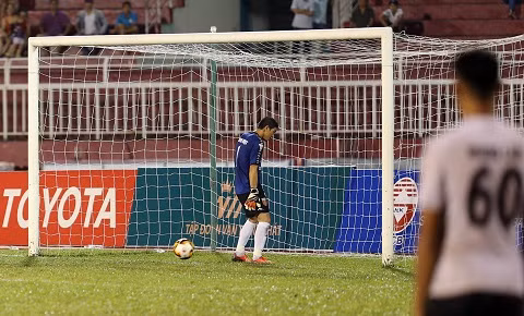 Thủ môn Minh Nhựt với hình ảnh phản cảm trong trận đấu xấu xí chiều 19-2-2017