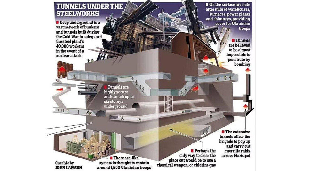 ANTD.VN - Tổ hợp nhà máy gang thép Azovstal được xây dựng từ thời Liên Xô với hệ thống hầm ngầm đặc biệt, ngoài ra luôn có dữ trữ nhu yếu phẩm giúp lực lượng phòng thủ bám trụ lâu dài.