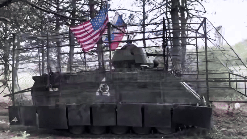 ANTD.VN - Binh sĩ Nga nói rằng, họ cắm cờ Mỹ lên thiết giáp M113 để tấn công cứ điểm của Ukraine là "cho vui" cũng như chọc giận binh sĩ của Kiev.