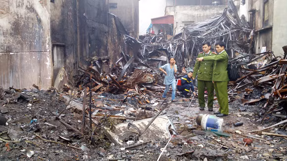 9h sáng 12-3, Cơ quan CSĐT CAQ Tây Hồ, phối hợp với Phòng nghiệp vụ Sở Cảnh sát PC&CC TP Hà Nội, VKSND quận Tây Hồ... đã tổ chức khám nghiệm hiện trường, điều tra làm rõ nguyên nhân hỏa hoạn. Theo ghi nhận của phóng viên ANTĐ tại hiện trường, hàng đống sắt thép cong vênh, mái tôn nằm chỏng chơ, nhiều cuộn vải, đồ gỗ cháy nham nhở, hóa than. Ít nhất 12 hộ dân bị ảnh hưởng do cháy, nhà ám khói đen, tường bong tróc, nứt vỡ, nhiều tài sản trong nhà bị hư hỏng. Cạnh hiện trường vụ cháy, ngôi nhà 2 tầng, số 110 đường Âu Cơ của bà Trần Thị Tâm bị hư hại nặng. Cửa sổ ngôi nhà bị lửa nung nứt vỡ hoàn toàn, nhiều đồ điện trong nhà bị sức nóng làm biến dạng. Trao đổi với phóng viên ANTĐ sáng 12-3, ông Nguyễn Văn Quang - Chủ tịch UBND phường Tứ Liên, quận Tây Hồ cho hay: UBND quận đã chỉ đạo thành lập một tổ công tác gồm: Phòng LĐ-TB&XH, phối hợp với UBND phường Tứ Liên, các ban ngành đoàn thể tổ chức khảo sát thực tế hơn 10 gia đình bị ảnh hưởng bởi cháy để có phương án hỗ trợ.