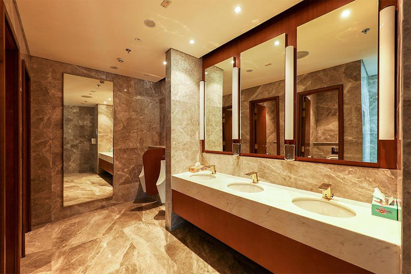 Hệ thống phòng vệ sinh của VIP, CIP Lounge cũng được chủ đầu tư chăm chút tỉ mỉ với không gian riêng tư, hệ thống vòi rửa tay cảm ứng tự động, được mạ vàng sang trọng, cùng những tấm gương lớn vừa tạo cảm giác rộng thoáng, vừa mang đến không gian chỉnh trang dung nhan thuận lợi cho mọi hành khách.