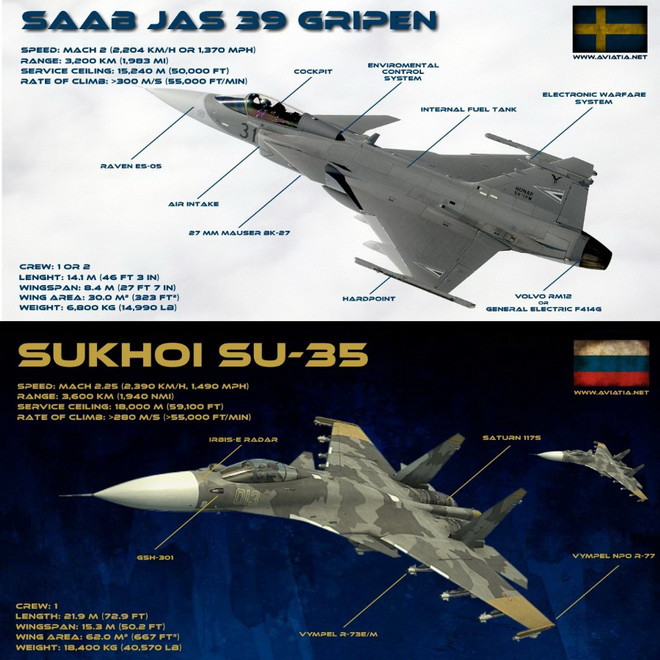 Vì sao Su-35 khó có cơ hội chiến thắng khi phải đối đầu JAS-39 Gripen?